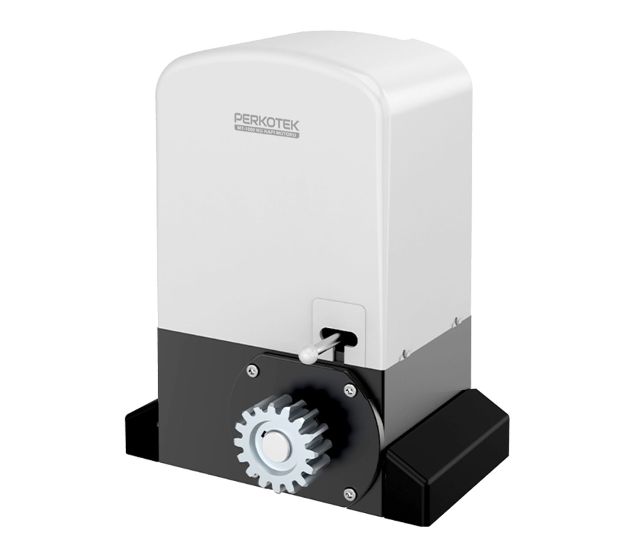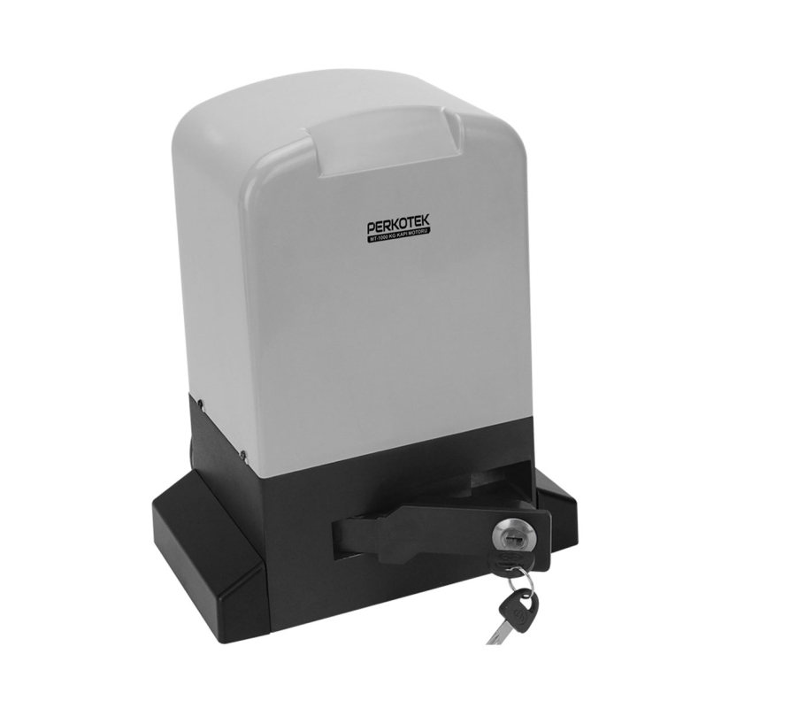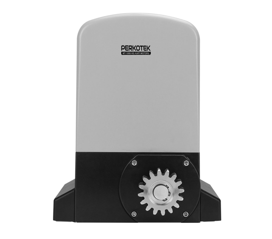 PERKOTEK 1000 KG Kayar Kapı Motoru yoğun kullanımlı endüstriyel kapılar için tasarlanmış olup her türlü zorluk derecesinde performanslı olarak çalışır. Elektrik kesintisinde manuel anahtarı ile motor boşa alınır ve kapı ittirilerek açılabilir. Motor hızlanması yavaş başlar hızlanır ve yavaş kapanır. Enerji var iken ve sabit durumdayken motor kendini kilitler ve zorlama ile açılmasını engelleyerek ciddi güvenlik avantajı sağlar.